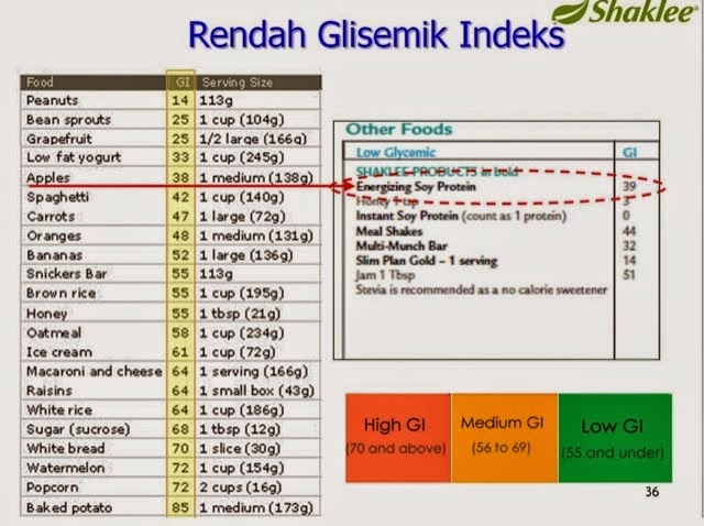 Kalau kita lihat carta kat atas ni, ESP Shaklee mempunyai G1 rendah iaitu 39 (lebih kurang sama dengan buah epal).